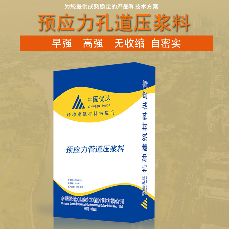壓漿料一種專用于后張法預應力孔道壓漿施工材料,由多種優(yōu)質(zhì)水泥基材料和高性能外加劑優(yōu)化配制而成,具有優(yōu)異的流動性,漿體穩(wěn)定,充盈度好,凝結(jié)時間可調(diào),無收縮、微膨脹,強度高,不含對鋼筋有害物質(zhì)等特點,預應力孔道壓漿料適合各種公路,高速公路,橋梁梁箱后張法預應力橋梁孔道壓漿,大型預應力結(jié)構(gòu)孔道壓漿, 具有:流動性好,不泌水,不分層,填充飽滿充盈,密實無空隙,提高結(jié)構(gòu)的可靠性,延長錨具使用壽命;飽滿高強,保證預應力筋與混凝土之間的粘結(jié)力等特點.